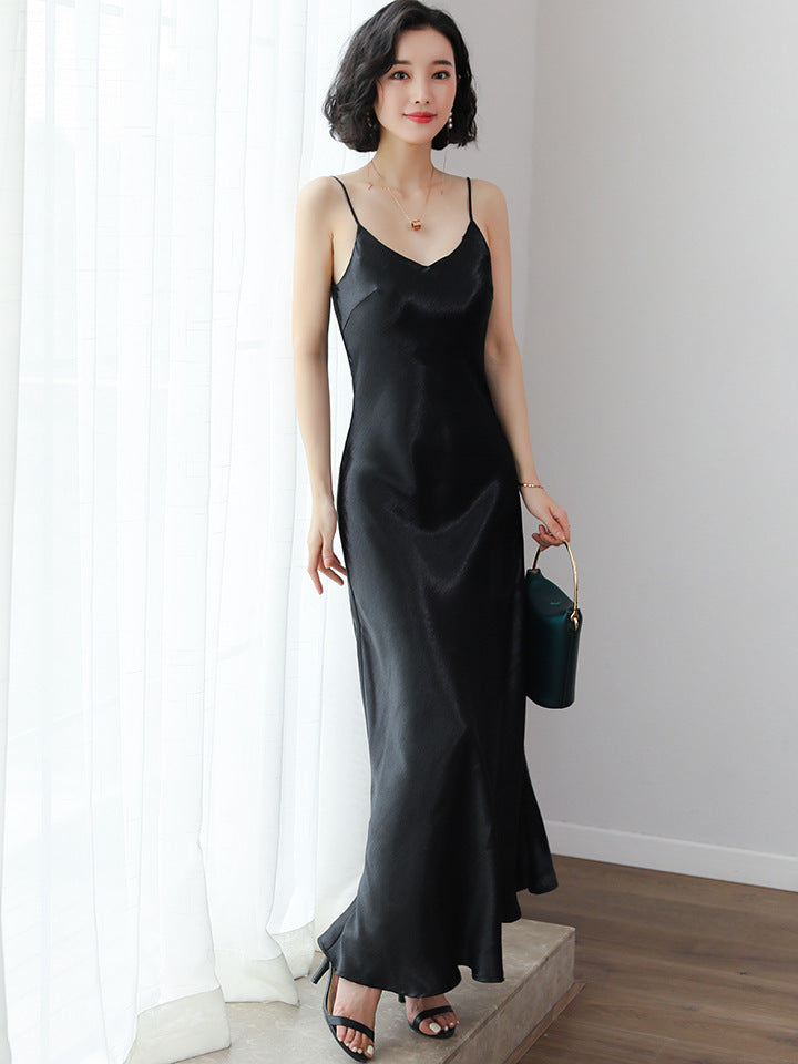 Dress Spaghetti Strap Party Dress Vintage Gold White Silk Sexy Maxi Dresses