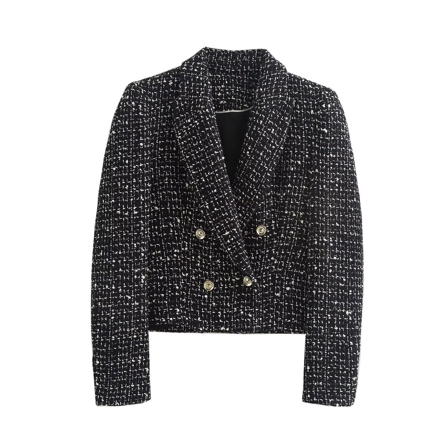 Elegant Texture Double Breasted Suit Long Sleeve Short Coat